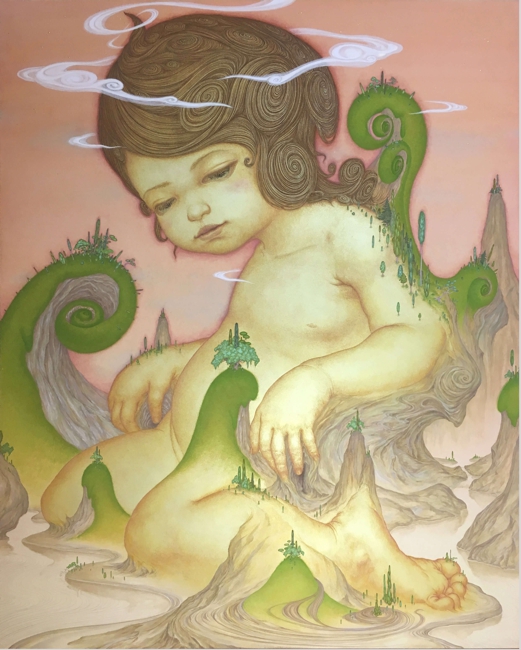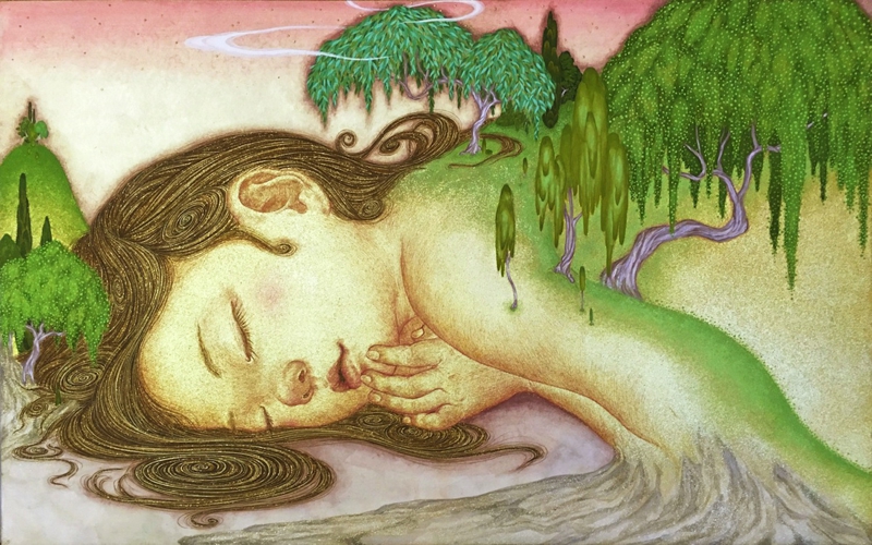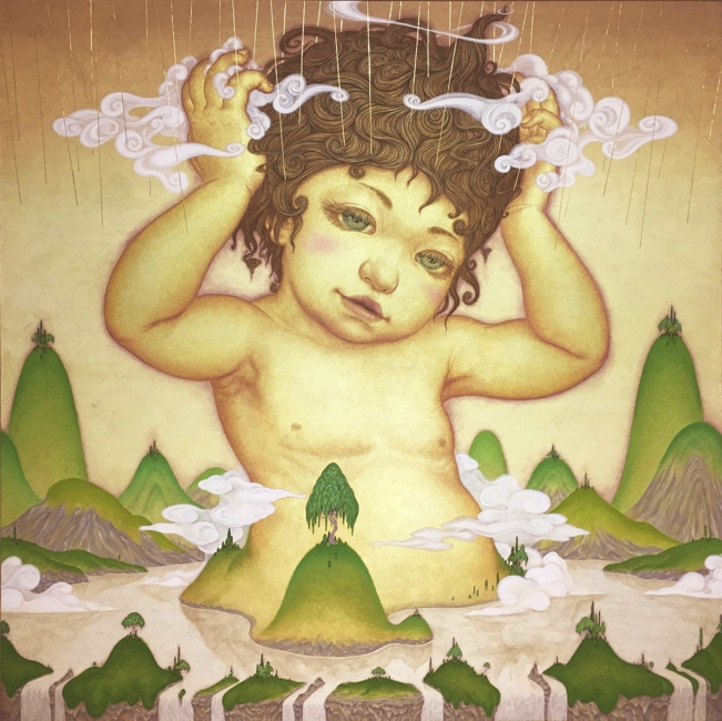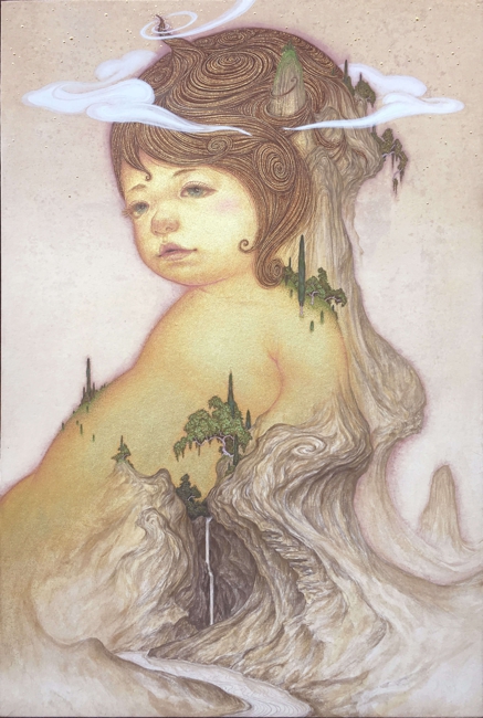 雲肌麻紙 膠 墨 顔料 金箔 金泥
