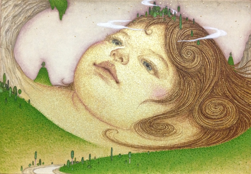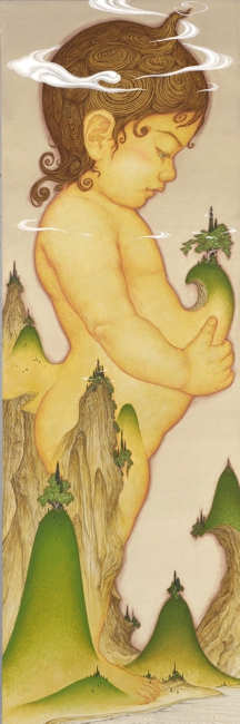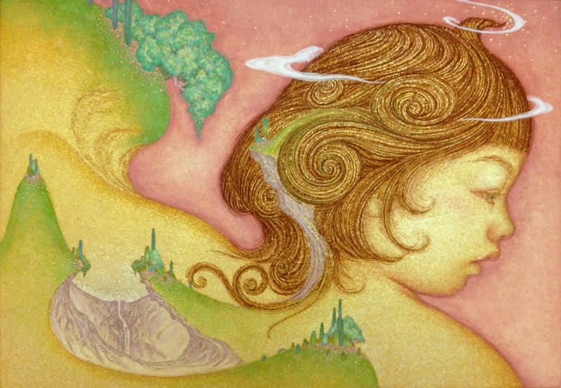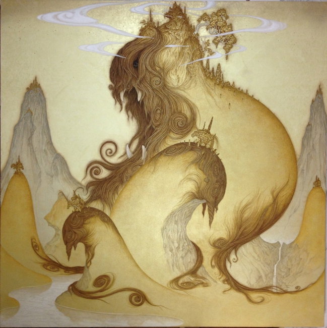 雲肌麻紙 膠 墨 顔料 金箔 金泥
